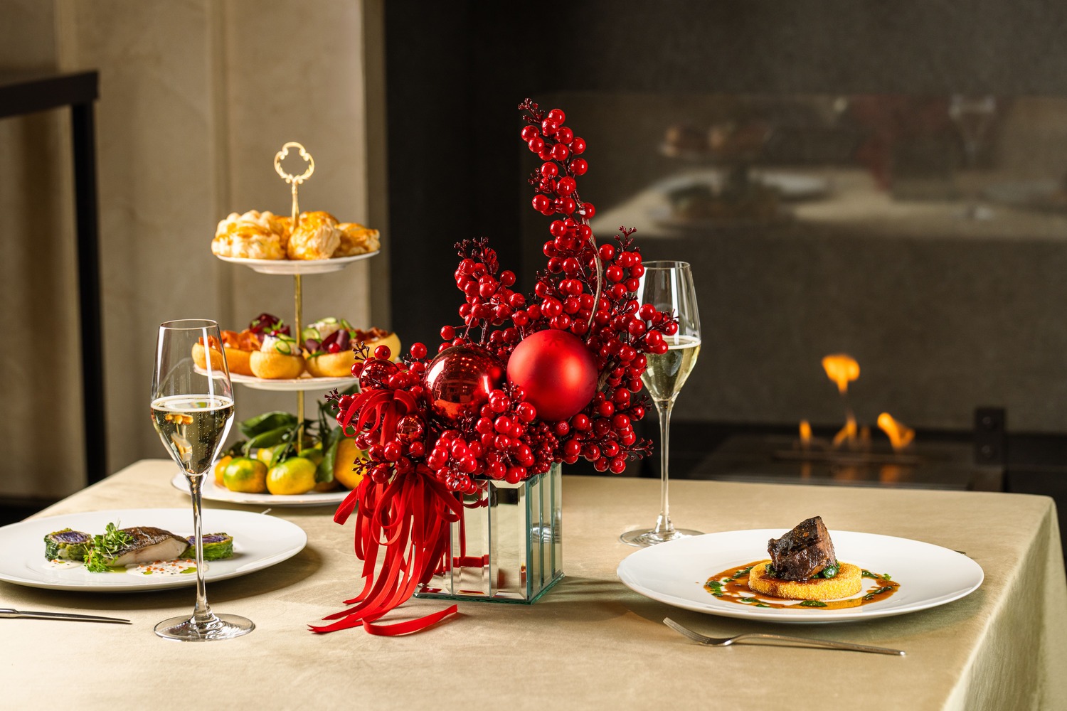 На праздничном столе будет свое действо — специальное меню из пяти курсов от шеф-повара отеля Дженнаро Конте и шеф-повара Quadrum Константина Нецветаева. Помимо обильных закусок с осетром, икрой трески и утиным хамоном, в качестве порционной холодной закуски подается камчатский краб со страчателлой и крабовым биском, горячей — равиолоне со шпинатом и карпаччо из выдержанного рибая и черным трюфелем. Основное блюдо — ролл из лакедры и королевской креветки или пирог с говяжьей щекой и фуагра на выбор.