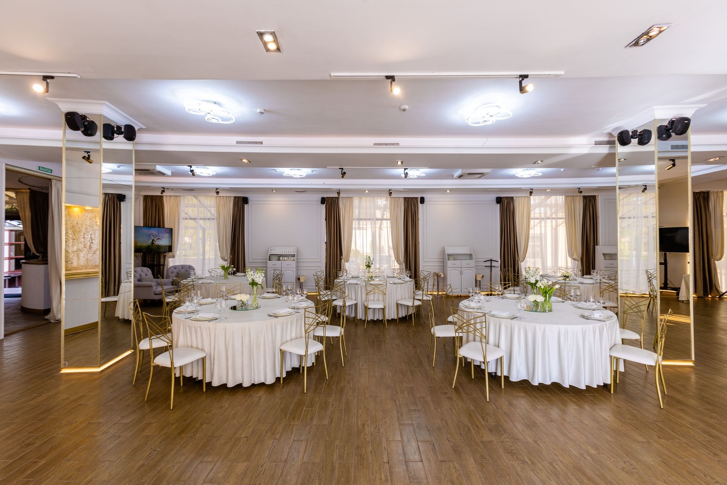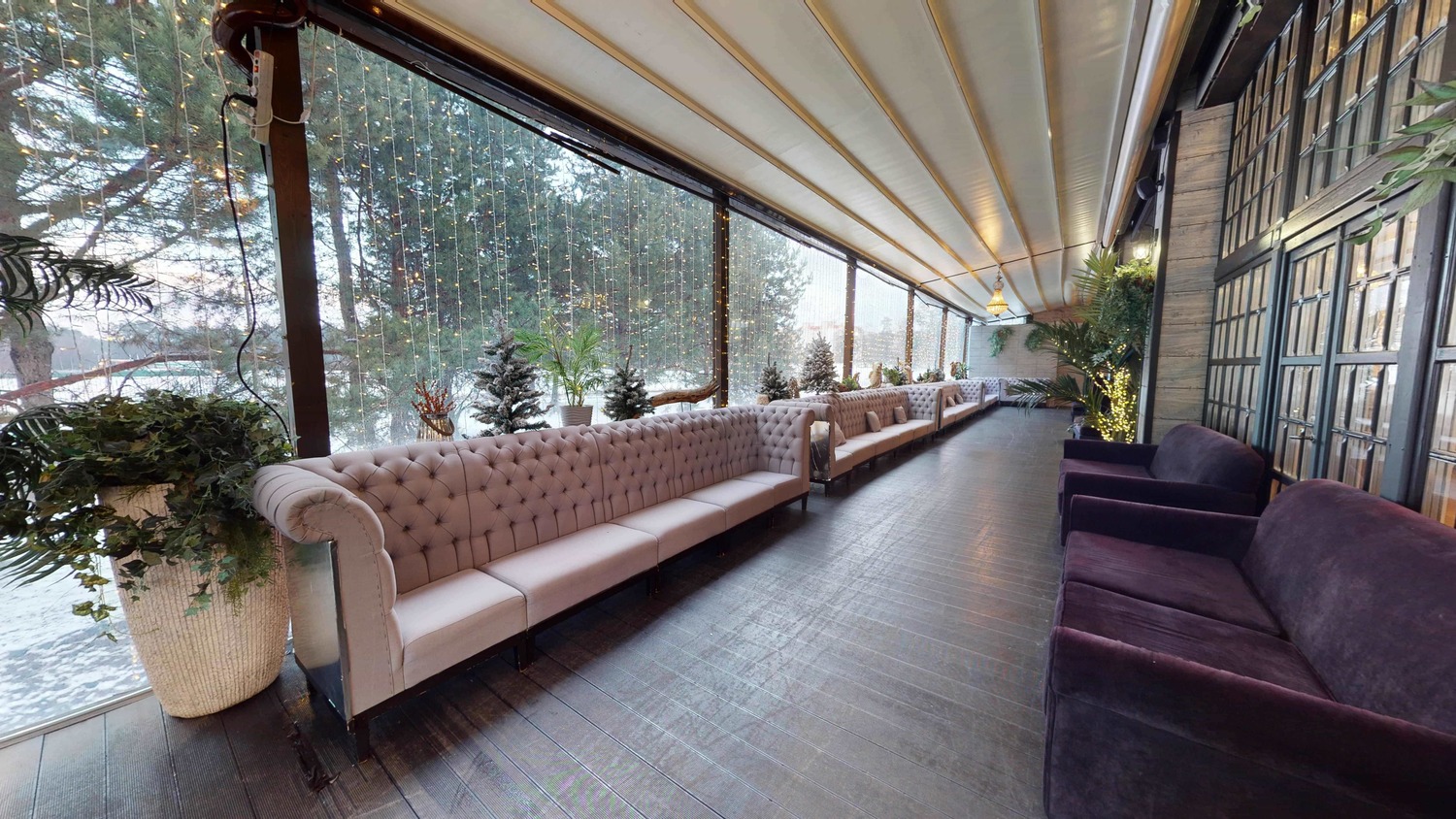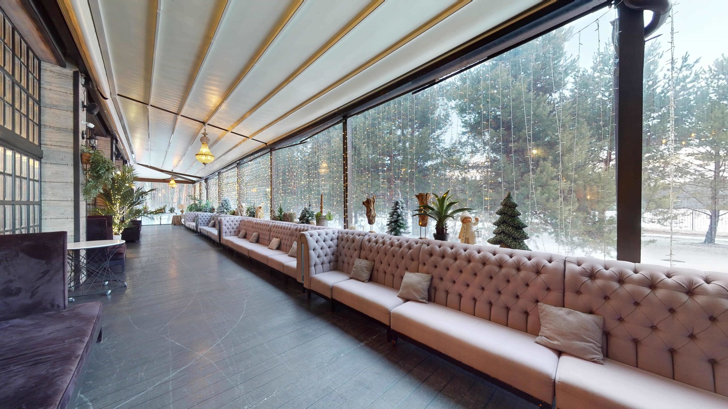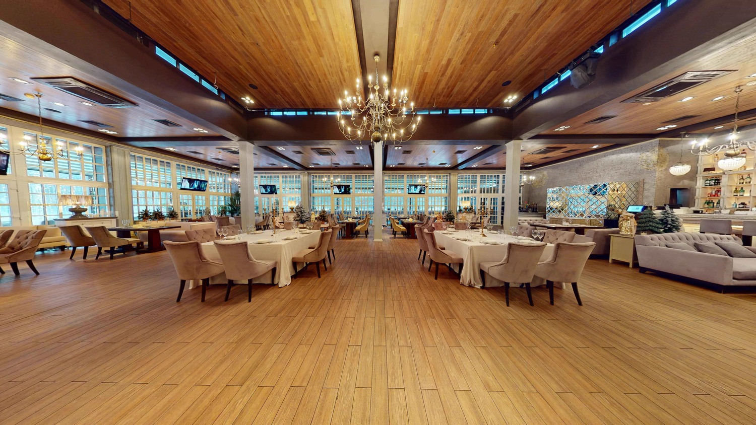 Пространство ресторана претерпело значительные архитектурные изменения, еще больше расширив возможности для проведения грандиозных событий. Шесть метров высоты, панорамные окна, наполняющие залы естественным светом, и продуманная трансформация пространства работают на впечатление. Это идеальная загородная площадка для свадьбы или корпоратива, способная воплотить самые смелые декораторские замыслы: от таинственного сада до торжественного королевского банкета.