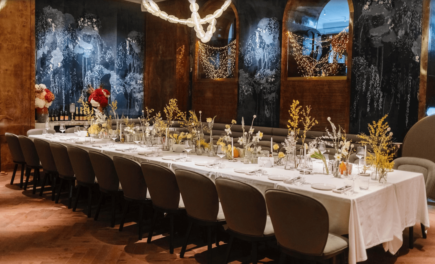 Площадь ресторана в 700 квадратных метров позволяет воплотить сценарии любой сложности и рассадить до 120 гостей (вместимость ресторана). Мы выделяем четыре ключевые локации для вашего идеального вечера: